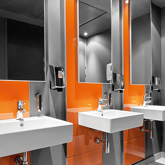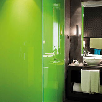 Lackiertes Glas Lacobel bringt Farbe und Stil in Ihr Badezimmer. Ob als Waschtischplatte oder Duschrückwand – die glänzende, pflegeleichte Oberfläche schafft nicht nur optische Highlights, sondern ist auch besonders robust und resistent gegen Feuchtigkeit.