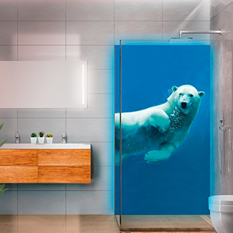 LED-Flächenlichter mit Fotodruck bieten eine spektakuläre Beleuchtung und lassen die Duschrückwand zu einem echten Highlight werden. Die Kombination aus individuell gestaltbarem Fotodruck und sanfter LED-Beleuchtung sorgt für eine stimmungsvolle Atmosphäre in Ihrem Badezimmer.