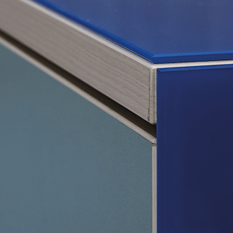 Hierbei wird die Kante hochglanzpoliert und zusätzlich mit einer abgeschrägten Fläche versehen – eine beliebte Variante im Möbelbau.