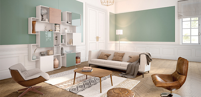 Lackierte Gläser: Die Rückseite des Glases ist mit einer speziellen Lackschicht überzogen, die dem Glas eine brillante Farbe und einen hohen Glanz verleiht. Lackiertes Glas findet nicht nur als Wandverkleidung Anwendung, insbesondere in Innenräumen wird es auch als dekoratives Element in Glasmöbeln verbaut. Es gibt lackiertes Glas in glänzender oder matter Ausführung. Die Produktlinien Lacobel und Matelac bieten eine große Farbvielfalt.