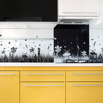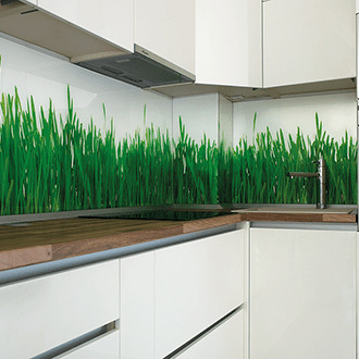 Eine Küchenrückwand aus Glas oder ein Spritzschutz aus Glas sind elegante und pflegeleichte Alternativen zu Fliesen. Sie schützen die Wand zuverlässig vor Wasser- und Fettspritzern und lassen sich mühelos reinigen. Dabei bieten sie gestalterisch viele Möglichkeiten: von klarem oder satiniertem Glas über farbig lackierte Varianten bis hin zu individuell bedruckten Motiven. Unsere Designgläser bieten vielfältige Optionen.