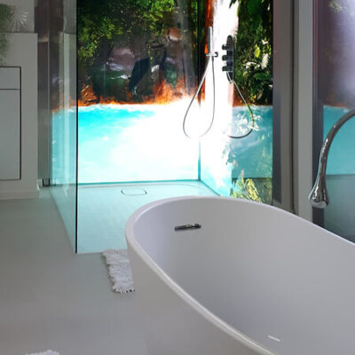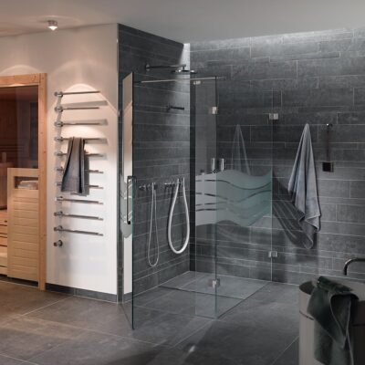 Im Bereich hochwertiger Duschverglasungen bieten wir über unsere Mitglieder eine Vielzahl an maßgeschneiderten Lösungen, die sich flexibel an architektonische Anforderungen und Designwünsche anpassen lassen. Die Basis bildet dabei in der Regel DELODUR® Einscheibensicherheitsglas – ein thermisch vorgespanntes Sicherheitsglas, das durch seine hohe Stoß- und Schlagfestigkeit sowie sein sicheres Bruchbild ideal für den Einsatz im Sanitärbereich geeignet ist.