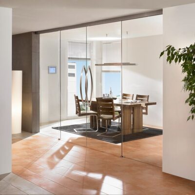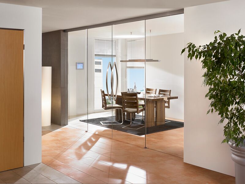 - Modulares System: VARIADUR® basiert auf einer Kombination variabler Glaskomponenten dazu gehören Schiebewände, Türen, Seitenteile und Oberlichter. Diese Elemente lassen sich flexibel und nach Bedarf zu eleganten Ganzglasanlagen zusammenstellen.